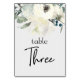 Ivory White Roses Floral Wedding Table Number
