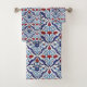 It was advertised as NAVY blue and the color sent was greenish blue. I am disappointed in this product. Quality and printing are great as are all my other orders. As you can see in picture the tea towel on right is perfect, hand towel not so much! Print was awesome and just as ordered
