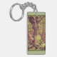 Porte - clé acrylique double face rectangulaire avec une image vintage du Jabberwock féroce dans le bois de Tulgey scrutant par derrière un arbre chez Alice dans l'armure. Le dos est un vert coordonné avec le texte personnalisable qui lit le "Merci pour célébrer avec moi au pays des merveilles !"
