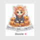 Our Jack-O-Lantern Cat Sticker features an orange and white cat dressed in a tie and jacket. Under him are the words "Happy Halloween". Leave the saying as-is or customize it to fit your own needs. This Halloween sticker is great for decorating a gift bag, handing out with treats, or presenting as a class reward. It can even be used for decorating water bottles, because it's waterproof.