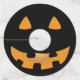Halloween party wine glass tags featuring an orange grinning jack o' lantern face.