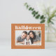Happy Halloween! Send Halloween greetings to family and friends with this customizable Halloween postcard. It features retro bold typography and a pumpkin accent on an orange background. Personalize by adding your details. This custom photo Halloween postcard is available in other colours. Matching items are available.