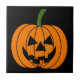 a grimacing Jack O' Lantern made from an orange pumpkin with black triangle eyes and nose and toothy mouth. May contain the words "Happy Halloween!" or "Trick or Treat!" which can be edited.