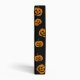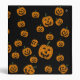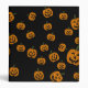 Scattered black and orange jack o' lantern pumpkins.
