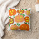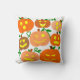 This throw pillow has a design of jack-o-lanterns with different faces repeating in each quarter.
