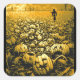 An October field, a lonely scarecrow in the distance. In this spooky pumpkin patch, several Halloween jack o'lanterns grin, carved into the spirit of the season. By Paxdomino