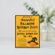 Personalize this Halloween postcard invitation featuring a friendly Jack O'Lantern wearing a witch hat.