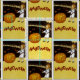 Vintage Halloween greeting card illustration showing a child in a jack o'lantern pumpkin patch.