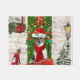 Jack Russell Dog Christmas sitting outside decorated home with Christmas wreath, Christmas tree is a perfect Christmas gift idea for dog lovers.