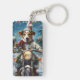 Jack Russell Dog Riding Motorcycle Christmas Keychain
