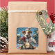 Jack Russell Dog Riding Motorcycle Christmas Square Sticker