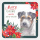 Jack Russell Terrier Poinsettia Border Christmas Square Sticker