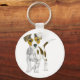 This lovely keychain, zip pull, features my drawing of a Jack Russell terrier puppy against a white background. The Jack Russell is white with brown patches and a brown and white face with big appealing eyes.