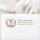 The left side of these return address labels feature an image of a spring flower wreath in colors of soft pink, blue, gold, green and cream. At the center is a beautiful watercolor portrait of an adorable wire haired Jack Russell Terrier. Tiny gold confetti gives a subtle sparkle to the background. Your custom text is in blue and brown gold at the right.