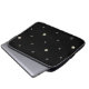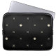 The sleeve is made of nice feeling material and seems very durable. I'm not sure how easy it'll be to clean, but the construction seems sound and the fabric is quick thick. I also like the double zipper. The printing is lovely and appears durable. The white on black contrast is nice, and the design very elegant.