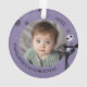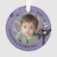 This is an enchanting, rounded Christmas ornament, perfect for commemorating a baby's milestone first holiday season with a touch of Halloween charm. The ornament beautifully showcases a sweet, personalized baby photo at its heart, framed by a soft lavender border decorated with playful black and white snowflakes. The design is charmingly accented with Disney's Jack Skellington, the Pumpkin King, looking dapper and ready for Christmas. The edge is inscribed with personalized text celebrating the baby's 1st Christmas and the specific year. This stunning piece is a delightful, lasting keepsake for fans of the beloved Tim Burton film!