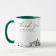 Modern Jacksonville skyline coffee mug favour gift with "thank you" script. The design showcases a stunning sketch with the ability to customize your names and exact location. Enter the Zazzle design tool for additional customizations.