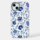 Jacobean Floral Big Pattern Blues on White iPhone Case