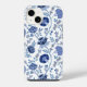 Jacobean Floral Big Pattern Blues on White iPhone Case