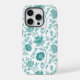 Jacobean Floral Big Pattern Teals on White iPhone Case