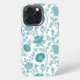 Jacobean Floral Big Pattern Teals on White iPhone Case