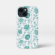 Jacobean Floral Big Pattern Teals on White iPhone Case