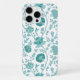 Jacobean Floral Big Pattern Teals on White iPhone Case