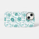 Jacobean Floral Big Pattern Teals on White iPhone Case