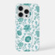 Jacobean Floral Big Pattern Teals on White iPhone Case