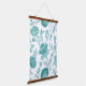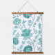 Jacobean Floral Lg Pattern Teals on White Hanging Tapestry