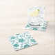 Jacobean Floral Lg Pattern Teals on White Square Paper Coaster