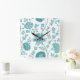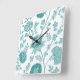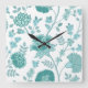 Jacobean Floral Lg Pattern Teals on White Square Wall Clock