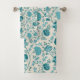 Jacobean Floral Pattern Teals on Cream Bath Towel Set