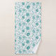 Jacobean Floral Pattern Teals on White Bath Towel Set