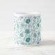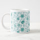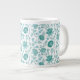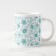 Jacobean Floral Pattern Teals on White Large Coffee Mug