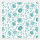 Jacobean style floral large surface pattern design in contrasting teals/duck egg blues on a white background.