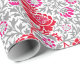 Jacobean Floral Wallpaper, Deep Red, Pink & Grey Wrapping Paper
