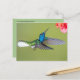 Postcard featuring a blue & green white-necked jacobin hummingbird in flight. Photo taken at Rancho Naturalista, Cartago Province, Tayutic, Costa Rica.
