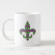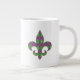 Un motif arlequin de vert et de violet se transforme en Jacquard ludique avec une superposition de silhouettes de diamants dorés et de fleur de lis, créant un motif amusant et coloré parfait pour toute célébration Mardi Gras influencée par la Nouvelle-Orléans. La motif est masquée derrière la silhouette d'une fleur de lis pour ajouter une note finale amusante. Cette tasse est disponible en jumbo, espresso, et la porcelaine osseuse tailles et styles.