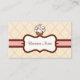 Un cupcake à la vanille donne à ce Jacquard carte de visite style vintage. Customisez ce carte de visite élégant pour répondre à vos besoins. Ajoutez ou supprimez des informations, changez le style de police, la taille de police, etc...Le design est de l'art original. Utilisez ce carte de visite élégant pour un spa, salon, petite entreprise, décoration maison, pâtisserie, magasin de crème glacée, salon de ongles, auberge, cosmétique, préscolaire, planificateur d'événements, garderie, maternelle, confiserie, chocolaterie, magasin de sucreries, chambres d'hôtes, boutique, boutique etc...