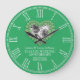 Customized green jade wedding anniversary clock personalize with your couples photo, year of marriage, and names or relationship to you. The example reads Jasmina and Tommy Robinson 12th Jade Wedding Anniversary and your marriage and current date. Other matching items are available. Jade beaded heart effect graphic art and design by Sarah Trett for www.mylittleeden.com