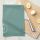 Add bespoke elegance to your kitchen with these simple monogrammed kitchen towels in jade green and white. Design features your single initial family monogram in classic lettering, inside an ornately detailed flourish frame.