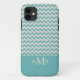 Jade Green Chevron Stripe 3 Monogram Case-Mate iPhone Case