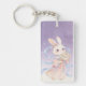 Bring a touch of mythical charm to your keys with this adorable bunny in Hanfu with floral fan. Inspired by the legendary moon rabbit from Chinese folklore, this design features a cute bunny dressed in a delicate pastel Hanfu, holding a beautiful floral fan. With soft ribbons flowing around, it adds a whimsical touch to the already enchanting character.