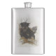 The product is a good size and came exactly as it was pictured. The lid is not attached to the flask, which could be dangerous on drunken nights... The print came out surprisingly well and looks very sharp. Would definitely recommend.