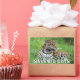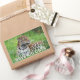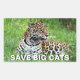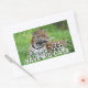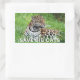 Rectangular sticker with an image of a handsome jaguar lying in the grass and an optional important message.