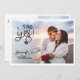 Annoncez votre fiançailles avec cette carte faire-part moderne et amusante. L'avant de la carte est personnalisable avec l'une de vos photos préférées et vos noms et a une légende de superposition tendance qui dit "J'ai dit oui" décoré avec une jolie bague fiançailles. Customisez le dos de ce faire-part avec une deuxième photo, votre texte et un code QR pratique pour tenir vos invités à jour avec tous vos détails mariages.
