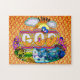 Rétro puzzle hippie de style d'évangile. Super dans l'utilisation de la conception et de la couleur. Ce puzzle exceptionnel a un vers au sujet de Dieu affectueux. 22h37 KJV de Matthew "