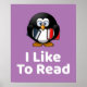 Mignons et drôles "I Like To Read" manchot tenant ses livres.