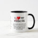 J'AIME MA FIANCÉE Mug Chrétienne Personnalisée avec TEXTE PERSONNALISABLE. Simple et élégant café CHRÉTIEN INSPIRATIONNEL Mug qui dit J'AIME MA FIANCÉE et comprend des coeurs rouges. En dessous se trouve le texte basé sur le verset de la Bible de 1 Corinthiens 13. Un cadeau idéal pour les couples engagés, Anniversaires, Noël, Anniversaires, ValENTINE'S, etc. Vous pouvez les ajouter à votre table de marchandage lors de conférences et conventions de relations, remplacer le verset de la Bible par votre propre devise ou message personnalisé, ou donner comme cadeaux de faveur. BOYFRIEND, GIRLFRIEND, MARI, WIFE, FIANCÉ et FIANCÉE versions disponibles.